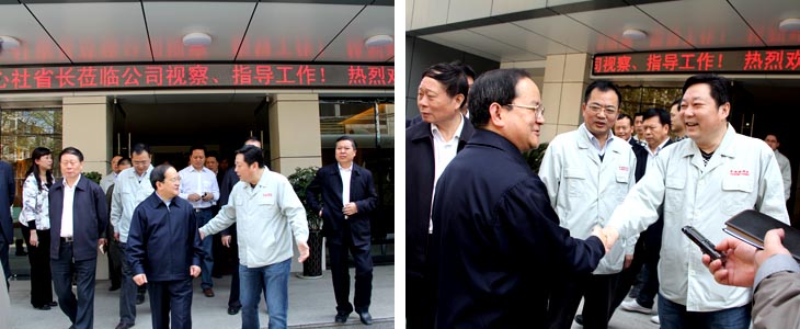 2012年4月6日江西省人民政府省長(zhǎng)鹿心社一行在市委書記鄧保生、市長(zhǎng)劉昌林等省市領(lǐng)導(dǎo)的陪同下來(lái)我司視察工作,鹿心社省長(zhǎng)一行參觀了工廠生產(chǎn)車間、國(guó)瓷館,詳細(xì)了解了公司的生產(chǎn)運(yùn)營(yíng)情 況并對(duì)公司產(chǎn)品贊不絕口。視察期間,鹿心社省長(zhǎng)對(duì)公司給予了高度評(píng)價(jià):“你們公司為景德鎮(zhèn)爭(zhēng)了光,為江西爭(zhēng)了光,為國(guó)家爭(zhēng)了光。"并希望公司能牢牢抓住精品路線,抓住高端市場(chǎng),搞活機(jī)制,繼續(xù)做的更大更好。