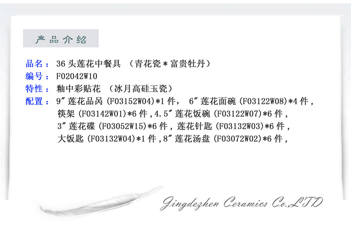 36頭蓮花中餐具青花瓷富貴牡丹